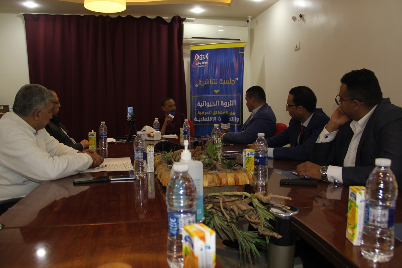 نظم راديو «هواها بيطري»، جلسة نقاشية حول «الثروة الحيوانية بين المشاكل المرضية والتحديات الاقتصادية»، وتناولت الجلسة الأزمات والتحديات التي يواجهها القطاع، ومنها: سعر الخامات العلفية والأعلاف النهائية وتأثيرها على القطاع، ومواجهة المشاكل المرضية، والثروة الحيوانية إلى أين في الفترة المقبلة؟ .