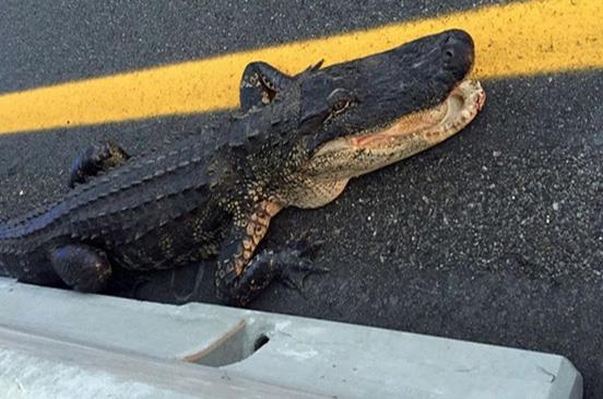 تمساح ضخم يعطل حركة المرور على طريق