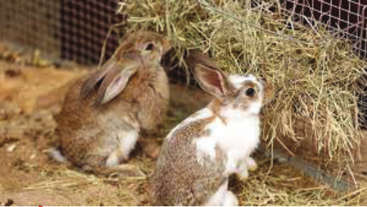 1- تتغذى الأرانب بمراحلها المختلفة على مواد خشنة كالبرسيم أو الدريس لأن نسبة الألياف المرتفعة لاتؤثر على الهضم في الأرانب